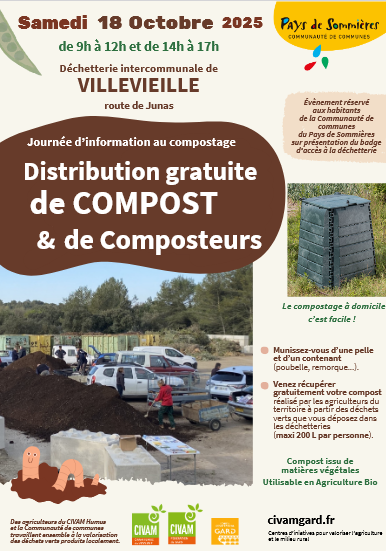 La Communauté de Communes en collaboration avec le CIVAM du Gard, organise une journée de distribution de compost le :