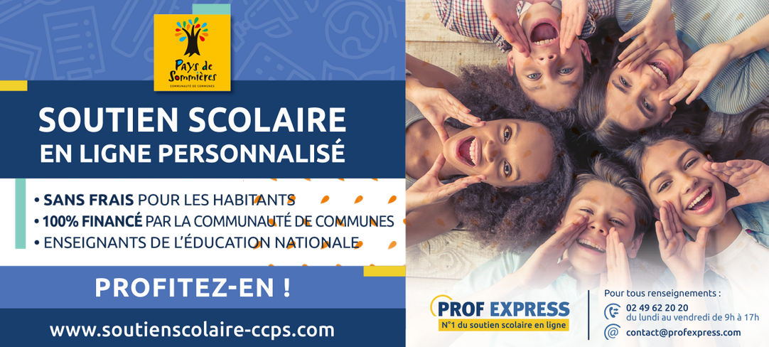 ACCÈS OFFERT PAR LA COMMUNAUTÉ DE COMMUNES DU PAYS DE SOMMIÈRESProf Express est un dispositif complet de soutien scolaire en ligne personnalisé, gratuit, illimité et performant pour accompagner vos enfants.